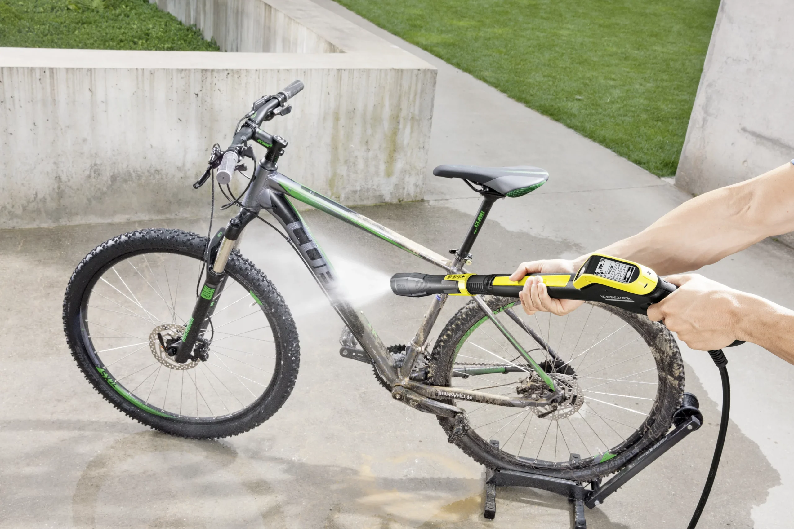 - High pressure washer. For cleaning dirt, mud, muck & grime off surfaces, such as gardening machines & tools, patios, terrace, balcony furniture, fences, garden pathways, motorcycles, scooters, bicycles & external staircases