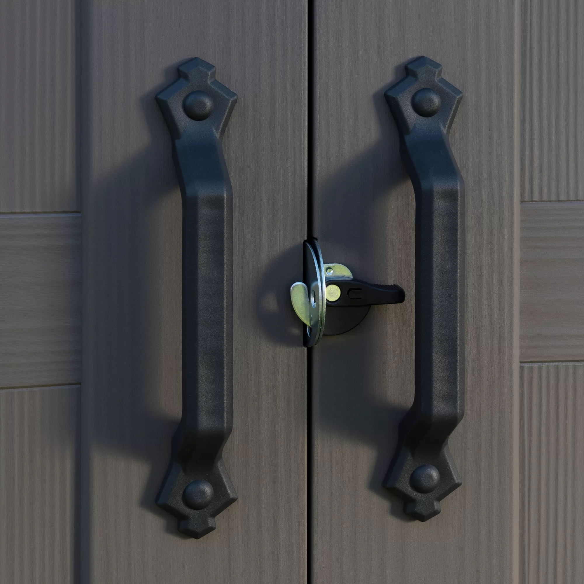 - Elegant wood effect exterior with double doors, plus ventilation grills for air circulation